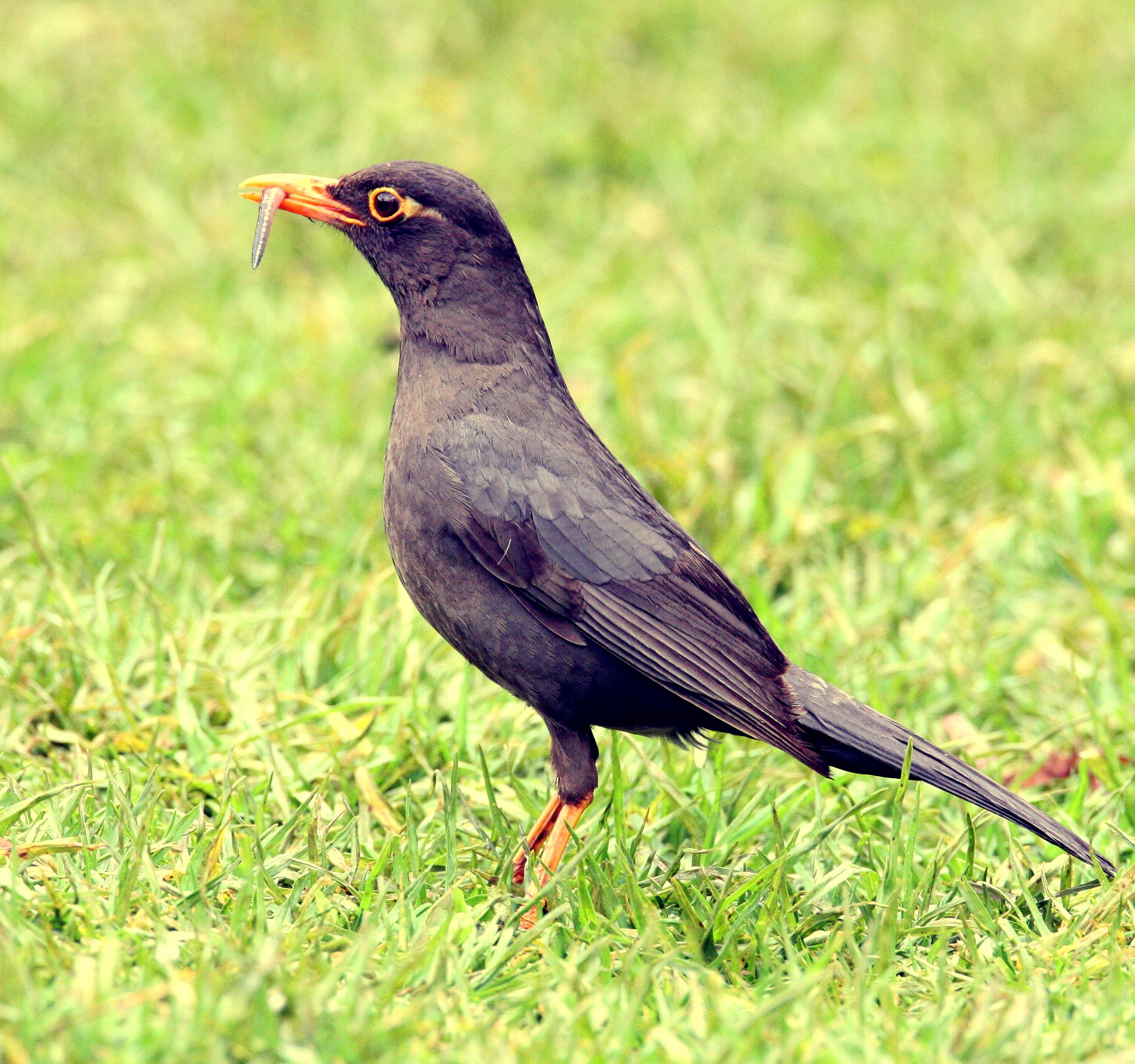Eurasian Blackbird (Turdus merula) in Ooty - this one crammed 7-8 earthworms into its mouth before carrying them to its nest.